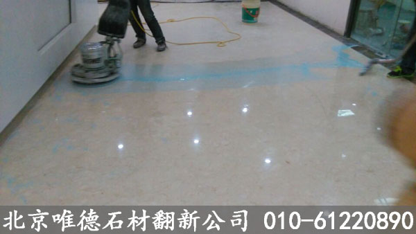 1.用石材护理机涂匀,然后磨至光亮即可。后用尘推把地面的粉尘推干净。应分段喷磨,每段1-2平方米。百洁垫应保持干净,当沾有太多粉末时会影响效果;如发现沾有污物就要反过来另一面使用,直至双面都沾污后更换新的一件。视乎工作面积,带备足够的百洁垫,沾污的要洗干净及晒干后才可以使用。