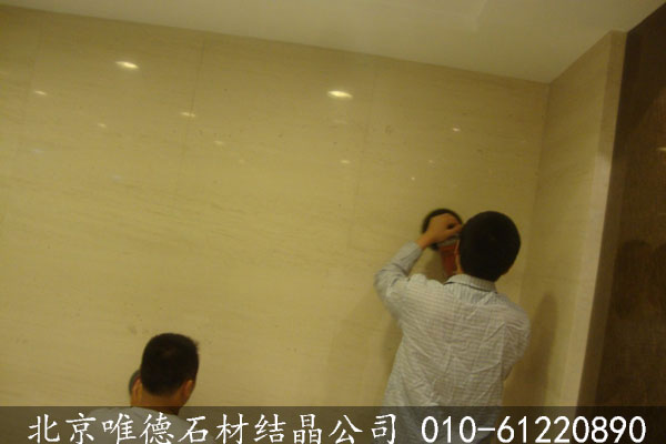 步骤五:剪口磨好后需要采用大理石墙面结晶粉大理石墙面翻新机和钢丝棉进行打磨抛光,在打磨重压下让大理石墙面和结晶粉在高温作用下发生物理和化学综合反应,形成一层致密、坚硬的结晶保护层。结晶后能增强大理石墙面的色彩和光亮度,还能达到防滑、防水、防油等功效。